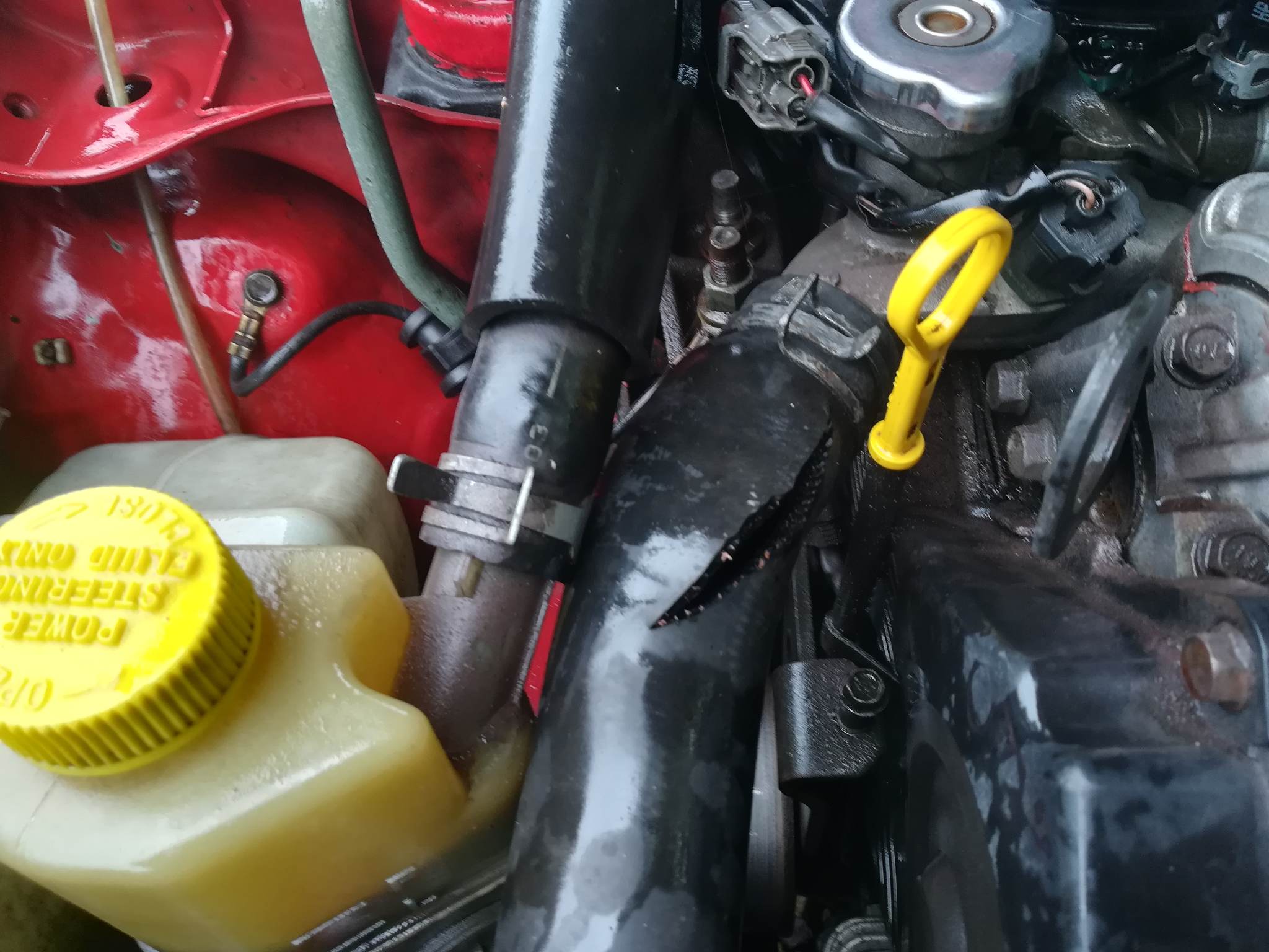 Wąż org. 30 lat , 280kkm przelatał , w środku rudy, oraz żaba straszna ,po rozgrzaniu widać było że puchł zanim went. się nie załączył. Tyle że dziś ona ledwo się dogrzała tak naprawdę na przestrzeni tych 8-10km..