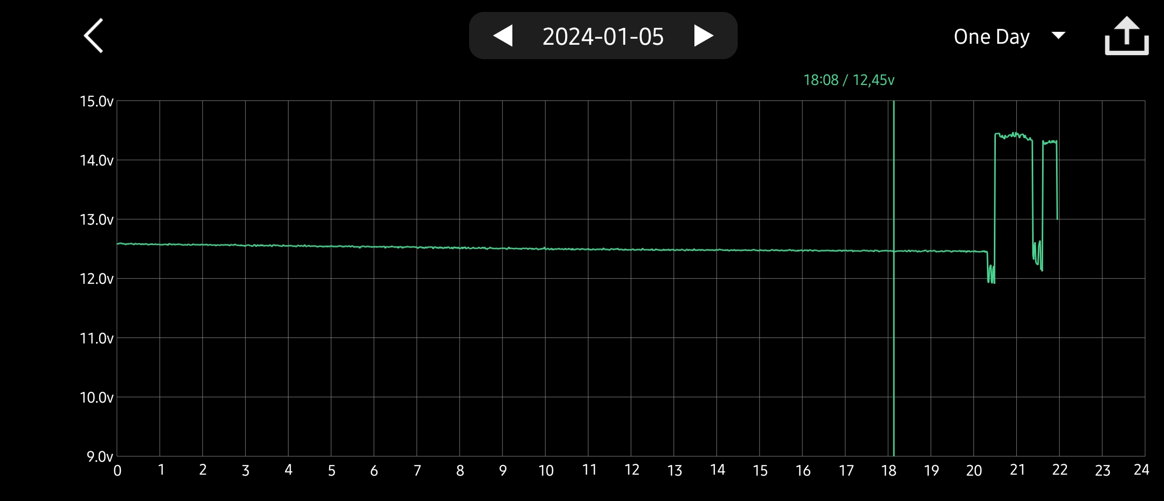 Autko stało na wolnym powietrzu, w temp. od 5 do -1 °C przez 36 godzin i wprawdzie dało się je uruchomić, ale trwało to wyraźnie dłużej niż zwykle, co potwierdza bardzo duży spadek napięcia do poziomu 8 V. Zanim otworzyłem drzwi, napięcie aku wynosiło 12,45 V, co potwierdza, że to nie jedyny parametr świadczący o kondycji akumulatora, a przynajmniej nie najważniejszy. Nie wiem, jaka jest aktualna gęstość elektrolitu tej 1,5 rocznej już Yuasy (po wymianie gwarancyjnej), ale w październiku wynosiła ona 1,23 – 1,25 g/cm³ (w zależności od celi), i to już po ładowaniach przywracających gęstość. Zakładam bezpiecznie, że teraz nie wynosi więcej, jak 1,23 g/cm³, a całkiem możliwe, że w niektórych celach jeszcze mniej.