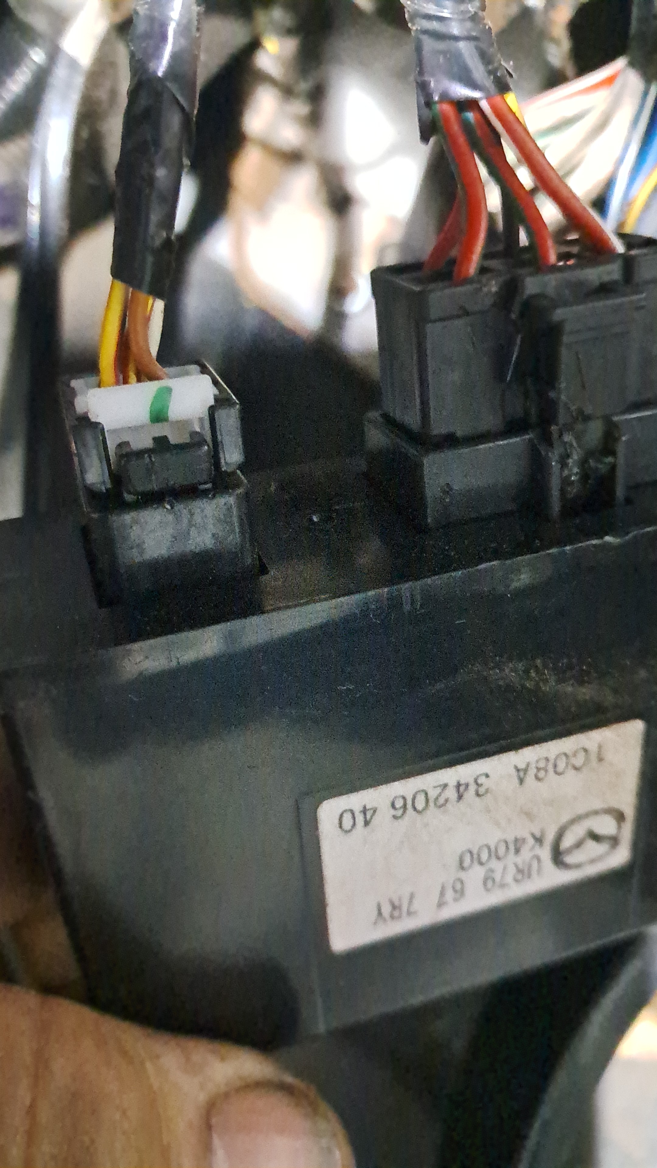 z wyłączeniem automatycznego włączania się świateł przy zapłonie. Nie chce, aby się włączały automatycznie. Poniżej wklejam zdjęcia skrzynki bezpieczników, kabli za panelem CD, modułu komfortu. Za pomoc zapłacę, zostawiam swój numer telefonu: +48 511 040 896, Maurycyświatła z Duńskich na Polskie w Mazda BT-50