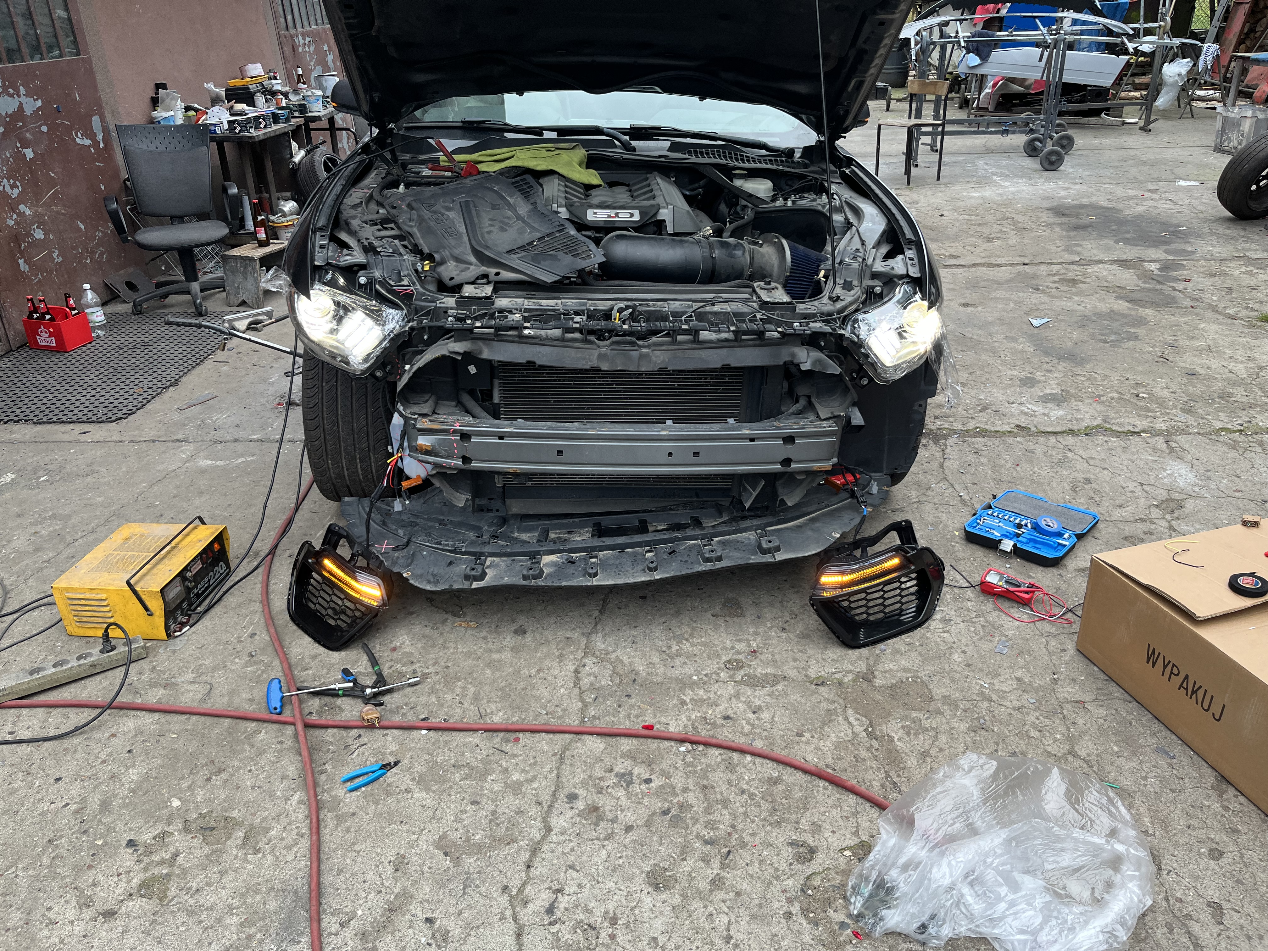 Dzis juz poszpaclowane, jutro przycieranie. Zrobilem wiazki przod i spadowalem lampy. Okulary byly podgiete. Nowa wiazka pod kierunki led. Zderzak nowy juz w kolorze, jutro pewnie zamocuje. Wiazka prseciwgielne plus nowe lampy tyl z nowymi wiqzkami, pewnie w sobote. W przyszly tydzien bok w lakier. Moze za