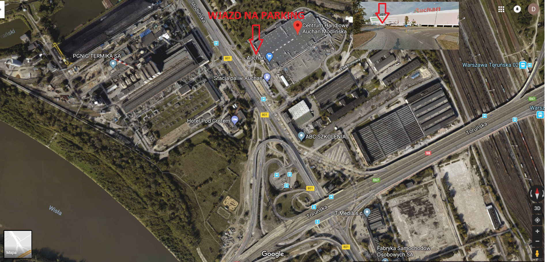 Centrum Handlowe Auchan Modlińska ul. Modlińska 8 parking L23 (zielony) mapka dojazdu