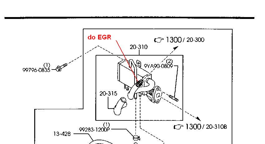 Ale nie o tym chcialem. Z tego co jest na tym rysunku, ten element blokujacy EGR (chlodnica spalin, oznaczenie na rysunku 20-310) trzyma sie tylko na 1 srubie (nr. 99796-0835). Nie pamietam czy mozna sie do niej dostac nie zdejmujac CR, ale sprawdzic mozesz. Jesli jest dostep, to wystarczy ja poluzowac delikatnie, zdjac fragment dolotu powietrza po prawej od EGR i przez powstala szczeline (grzechotka z przydluzka ~15-20cm) odkrecic 9YA90-0809. Po tym zabiegu mozna opuscic w dol ten element (reszta dochodzacych do niego wezykow jest elastyczna) i wyjac EGR. Dodam, ze opis tyczy Mazdy 6 MZR-CD 136km.