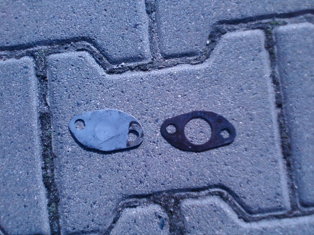 Z prawej oryginalna uszczelka pomiędzy EGR a kolektorem, z lewej ręczna robota zaślepiająca skutecznie EGR