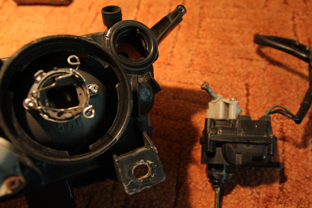 Moja sytuacja była następująca. Kupiłem auto z lampami angielskimi (dwie lampy KOITO z elektrycznym sterowaniem). Po dłuższym czasie udało mi się załatwić lampy europejskie.. ich stan pozostawiał wiele do życzenia :( Obydwie lampy były "manualne" i w dodatku w każdej z nich brakowało jakiejś części odpowiedzialnej za regulacje (takie plastikowe przekładnie ze śrubkami) No i najgorsze – jedna z nich była firmy DEPO. Najrozsądniejszym manewrem wydało mi się podmienić części lamp odpowiedzialne za europejskie świecenie :)