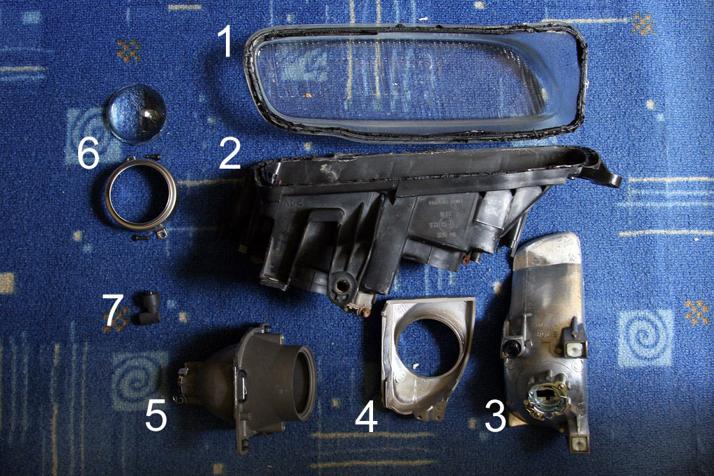 Części reflektora (na wszystkich zdjęciach stosuje tą samą numerację):